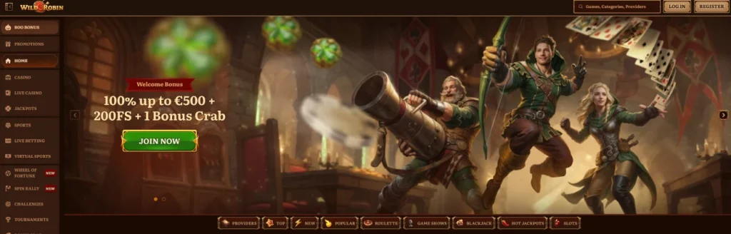 WildRobin je online casino i kladionica koji vam pruža ludu zabavu, kao što i sam naziv govori. Stranica podržava hrvatsko sučelje tako da je navigacija kroz casino vrlo jednostavna a zabave ne nedostaje.